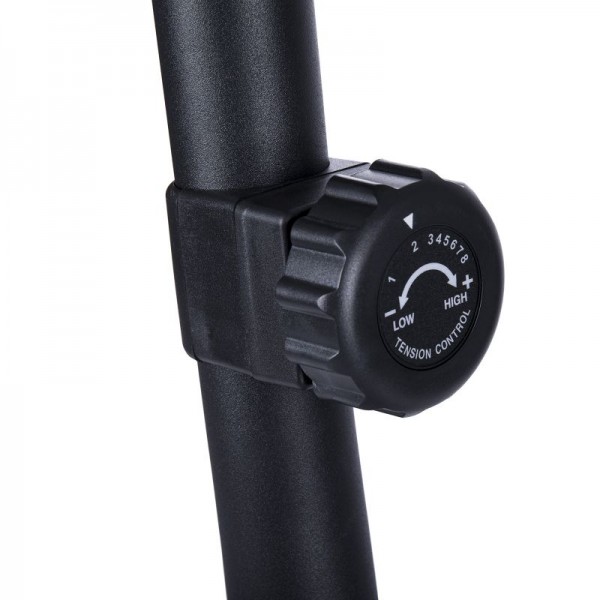 The multifunctional computer with LCD display shows data on speed, time, calories, distance and heart rate, and also has a scan function that allows you to display these data alternately. This ensures the ability to track your progress on a regular basis, and can additionally motivate you to train. The resistance of the pedals can be set by yourself using the knob on the steering wheel also while driving, so you can smoothly change the level of difficulty of training.